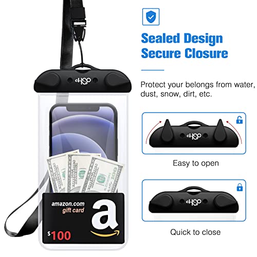 HeySplash Custodia Impermeabile, 2 Pezzi Compatibile con iPhone 13 Mini/iPhone 13/iPhone 13 PRO/iPhone 13 PRO Max iPhone 12, IPX8, Universale per Cellulari Fino a 7,2", Nero