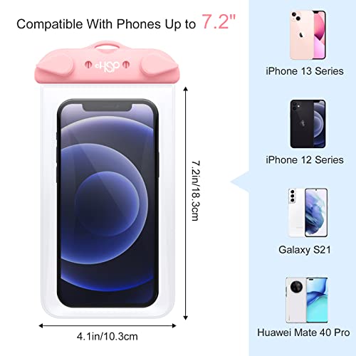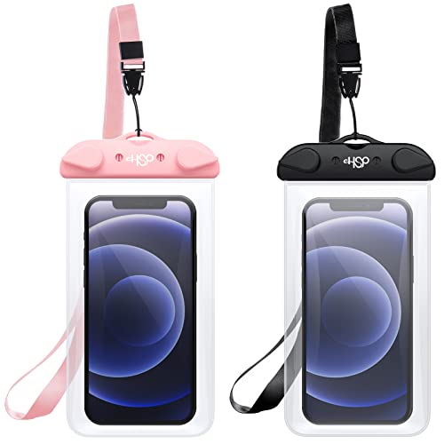HeySplash Custodia Impermeabile, 2 Pezzi Compatibile con iPhone 13 Mini/iPhone 13/iPhone 13 PRO/iPhone 13 PRO Max iPhone 12, IPX8, Universale per Cellulari Fino a 7,2", Nero & Rosa