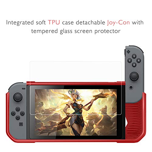HEYSTOP Switch Cover,Nintendo Switch Custodia con Protezione Schermo, TPU PC Protettiva Cover Case per Console Nintendo Switch,Comfort Grip Cover con Assorbimento degli Urti e Anti-Graffio (Rosso)