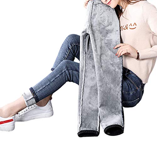 HFDHD Jeans da Donna Leggings Slim in Pile di Velluto Caldo Peluche Jeggings, Pantaloni addensati Invernali da Donna, Leggings in Denim Caldo Dark Blue&Grey XS