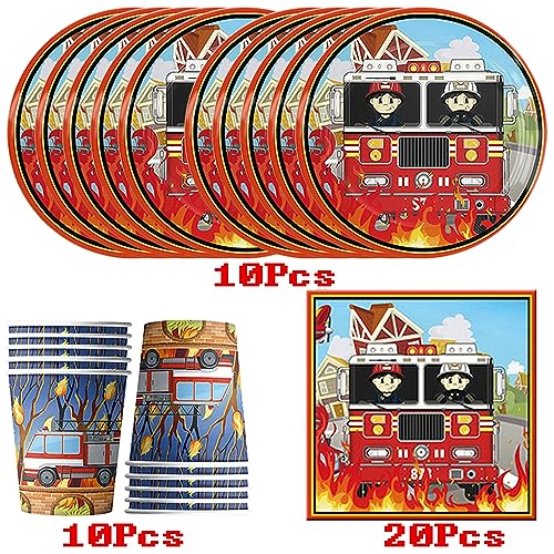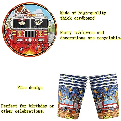 HGSHUO Pompiere Stoviglie per Feste Compleanno Decorazioni Stoviglie per Compleanno Camion dei Pompieri Bicchieri di Carta Piatti Tovaglioli Forniture per Feste Pompiere