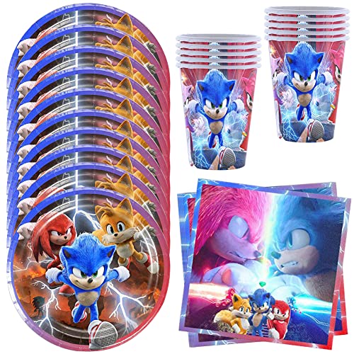 HGSHUO Stoviglie per Feste Compleanno Decorazioni per Sonic Stoviglie per Compleanno Piatti Bicchieri di Carta Tovaglioli Forniture per Feste Baby Shower 10 Ospiti