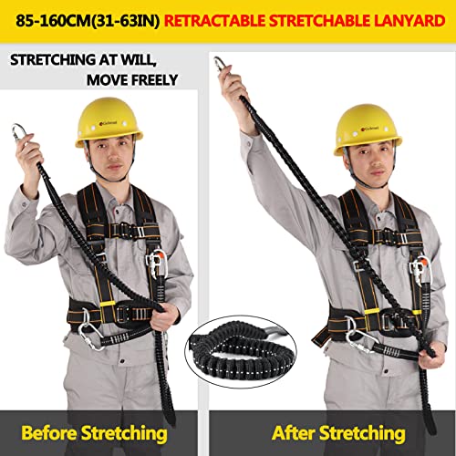 HGTRH Imbracatura Anticaduta Professionale, Imbracatura di Sicurezza per Ponteggio, Imbracatura Anticaduta per Tetto Certificata con Cordino Elastico Cintura di Sicurezza per Lavoro in Quota Alberi