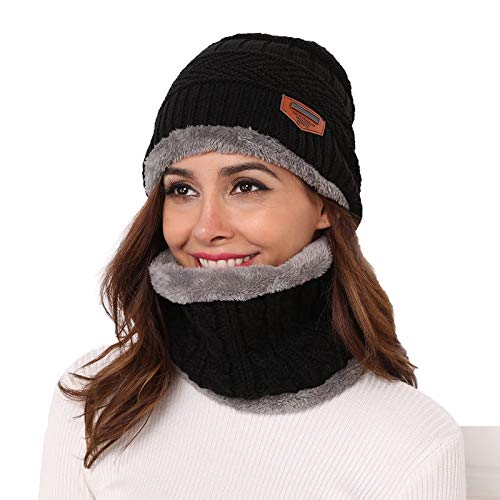 HHOOMY Berretto invernale lavorato a maglia Cappello scaldacollo Sciarpa e guanti touch screen Set berretto con teschio foderato in pile per uomo donna