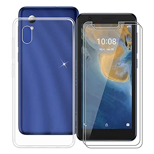 HHUAN Cover per ZTE Blade A31 Lite (5.00") con 2 Pezzi Pellicola Protettiva in Vetro temperato, Custodia Protettiva in TPU in Silicone Ultra Morbido Clear Antiurto per ZTE Blade A31 Lite - Clear