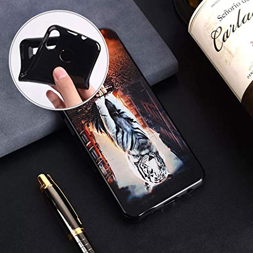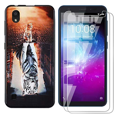 HHUAN Custodia per ZTE Blade A5 2019 Nero Cover Ultra Morbida Silicone TPU Tigre Bumper Case + 2 Pezzi Pellicola Protettiva in Vetro Temperato per ZTE Blade A5 2019 (5.45")