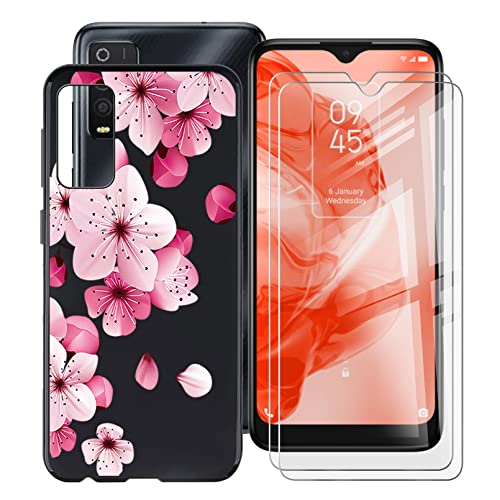 HHUAN Custodia per TCL 205 (6.67") + [2 Pezzi Vetro Temperato Pellicola Protettiva], Nero Morbida Silicone TPU Bumper Antiurto Case, per TCL 205 Cover - WM113