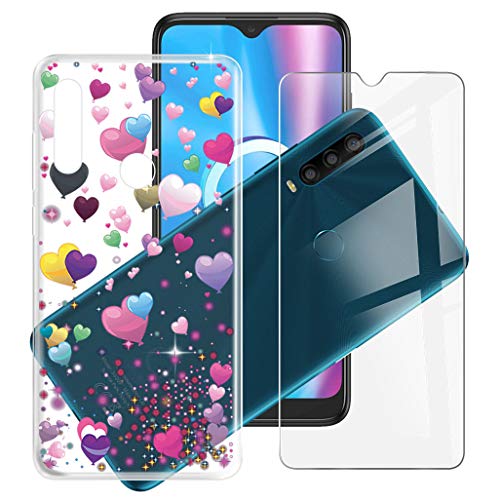 HHUAN Custodia + Vetro Temperato per Alcatel 1SE 2020 (6.22"), Trasparente Ultra Morbida Silicone TPU Bumper Cover Case e 9H Durezza HD VetroPellicola Protettiva - YQ29