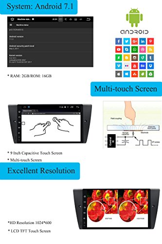 Hi-azul Android 7.1 Autoradio RAM 2G Navigazione Auto 1 Din Car Radio 9" Car Stereo con 1024 * 600 Touch Screen per BMW 3 Series E90/ E91/ E92/ E93 (con Telecamera Posteriore)