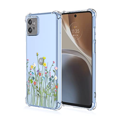 Hi-Case Cover per Motorola Moto G32 Custodia in Silicone di Trasparente con Disegno Floreale Fiori - Non Ingiallente, Full Body Antiurto Protettiva, Cespuglio di fiori