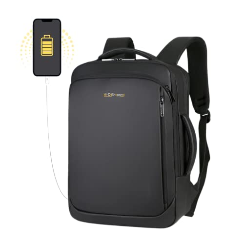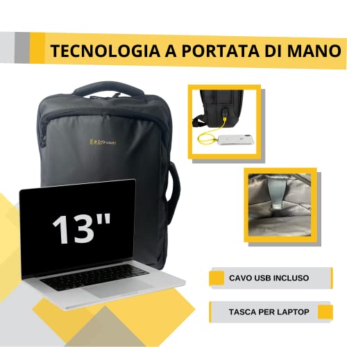 Hi-chshopping Zaino Porta PC Multitasche, Capiente, Compatto, Impermeabile, Per Laptop, Tablet, Ipad, Smartphone, Con Porta USB per Powerbank, Cavo Incluso, Unisex, 20 L, Ner