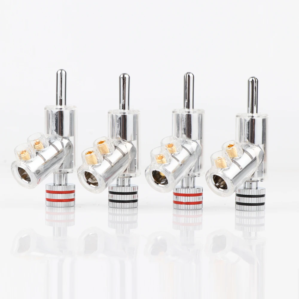 4pcs hi-end Rhodium plated Banana Lock Plugs HiFi Speaker Banana Connector plug loudspeaker wire jack