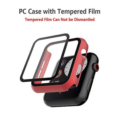 1. ⌚ 【Design speciale】 2 Pack Custodia(Rosso + Nero) Compatibile con Apple Watch 40mm serie 5/4, questa custodia per PC di alta qualità con protezione dello schermo temperata integrata copre lo schermo dell'orologio e i bordi curvi per una protezione completa a 360 gradi per l'orologio.