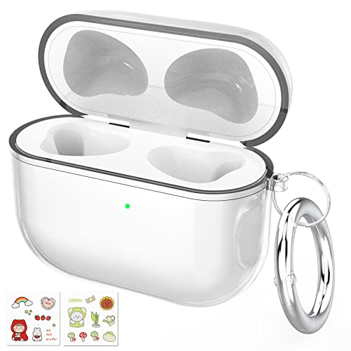 Hianjoo Cover Compatibile con Apple AirPods Pro, Silicone Protettiva Custodia Compatibile per AirPods Pro, con Moschettone e 2 Fogli Adesivi per Fai Da Te - Trasparente