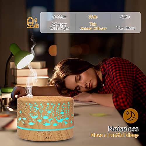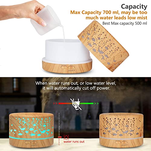 Hianjoo 700 ml Diffusore di Oli Essenziali con Telecomando, Umidificatore Ultrasuoni Diffusore di Oli Essenziali con 7 LED Colori per SPA,Yoga,Camera da Letto (Marrone Chiaro)