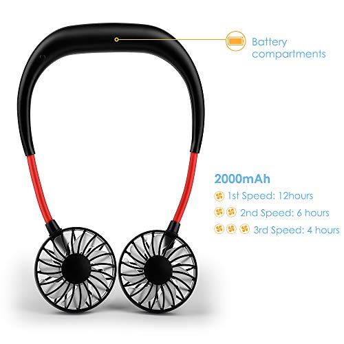 Hianjoo Ventaglio da collo indossabile, USB Mini ventilatore ricaricabile Portable Personal Fan, Handsfree Necklance Fan con 3 velocità per gli sport all'aria aperta, Viaggi, campeggio, ufficio - Nero