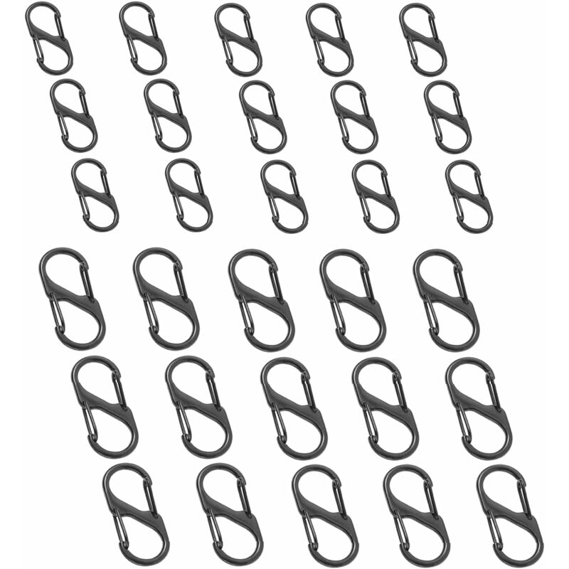 Materiali Premium: Il prodotto è realizzato in lega di alluminio premium, leggero, impermeabile, resistente all'usura, ad alta resistenza e durata. Può essere utilizzato all'aperto e non preoccuparti della pioggia o dell'acqua. Superficie liscia e lucida, piacevole da tenere e utilizzare. Contenuto di impegno: 30 mini moschettoni neri. 15 pezzi di 4 x 1,9, 15 pezzi di 3,2 x 1,5, diverse dimensioni e quantità sufficiente per l'uso e la sostituzione. Design: questo moschettone a forma di S ha due cursori per tenerli in posizione, in modo da poter attaccare oggetti di valore come chiavi da un lato e poi attaccare l'altro lato allo zaino, passando cinture o borse. App Grandezza: il portachiavi a forma di S è uno strumento utile se hai bisogno di aiuto con amici e familiari durante attività all'aperto come campeggio, pesca, viaggi, escursioni, ciclismo e alpinismo. Servizio clienti perfetto: Se hai domande sui nostri prodotti, inviaci un'e-mail. Risolveremo i problemi il più rapidamente