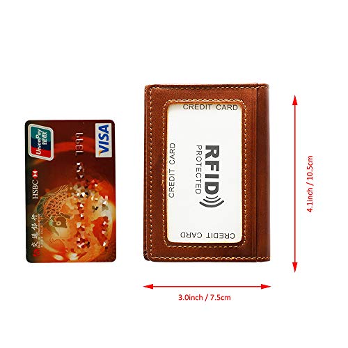 Hibate Leather RFID Blocking Credit Card Holder Wallet Sleeve Men's ID Case - Brown