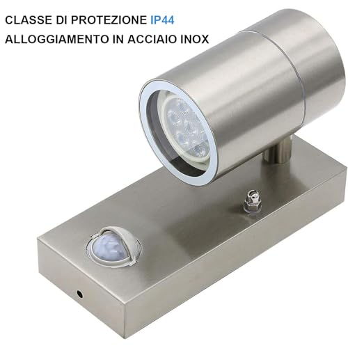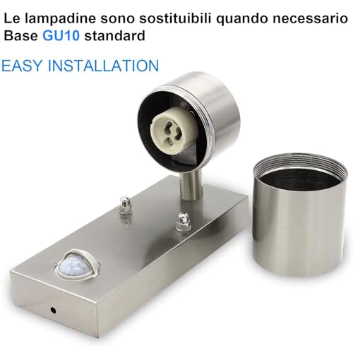 HiBay Applique da Esterno Interno con Sensore Movimento,7W Lampada da Parete Esterno GU10,Alluminio,Impermeabile IP44,550LM,inclusa Sostituibile Lampadina LED GU10 da Luce Calda per Veranda Balconi