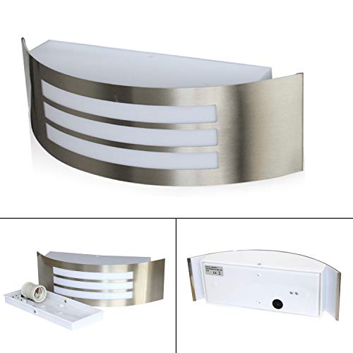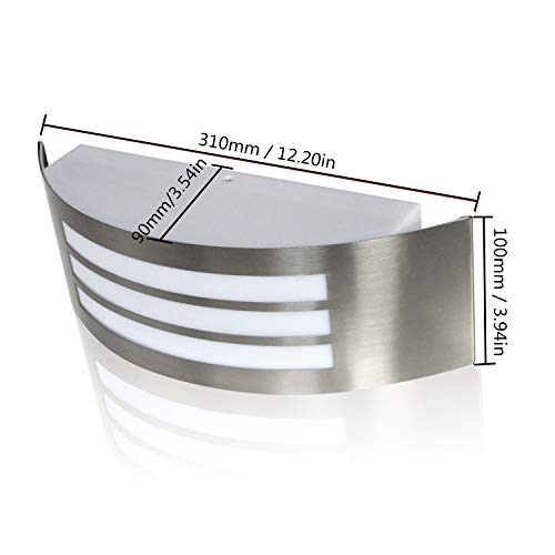 HiBay Lampada da parete a LED per interni ed esterni, IP44, in acciaio inox, E27, curva, elegante, da parete, 12 W, bianco caldo, alimentazione a rete, 1 unità