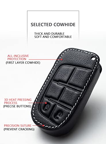 Compatibilità: custodia per chiave auto in pelle adatta per Jeep Wrangler Chrysler 300 PT Cruiser Sebring Dodge Caliber Nitro Jeep Compass Liberty. (Controllare la forma delle chiavi, se sono diverse, non saranno compatibili, quindi si prega di verificare prima dell'acquisto se la chiave della macchina è uguale a quella dell'immagine 2)