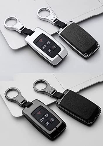 HIBEYO Custodia per Chiave Auto, Adatta per Land Rover Freelander2 Discovery5 LR2 Range Rover Evoque Sport Velar per Jaguar F-Type E-Pace, Custodia Protettiva in Pelle Argentata Nera
