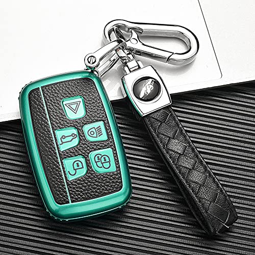 HIBEYO Custodia per Chiave Auto, Adatta per Land Rover Jaguar per LR4 Range Rover Evoque Sport Vogue Jaguar XE XF XJ Portachiavi in Pelle TPU Texture Verde