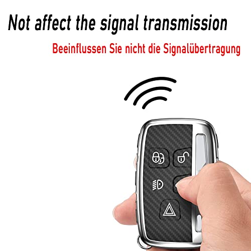 HIBEYO Custodia per Chiave Auto Range Rover in Carbonio TPU per Land Rover Sport Evoque Discovery LR4 Jaguar XF XJ XE F-Pace Keyless 5 Tasti Rosso