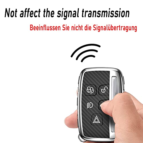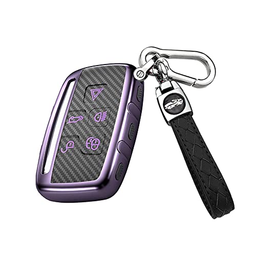 HIBEYO Custodia per Chiave Auto Range Rover in Carbonio TPU per Land Rover Sport Evoque Velar Discovery LR4 Jaguar XF XJ XE F-Pace Keyless 5 Tasti Colore Viola