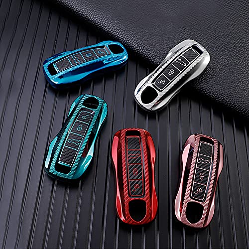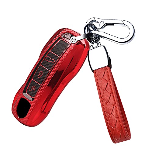 HIBEYO Samrt - Custodia Protettiva per Chiavi Auto Porsche Cover TPU per Porsche Macan Boxster Carrera Taycan 911 971 Panamera Cayenne, Portachiavi con Chiave di Protezione, Colore: Rosso
