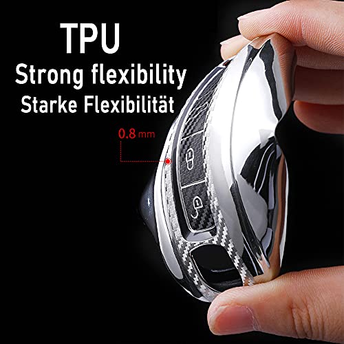 Materiale: la cover per chiave auto è realizzata in silicone TPU di alta qualità, la superficie è in fibra di carbonio, design innovativo, squisita ed elegante. Offre una protezione completa per le chiavi della vostra auto.