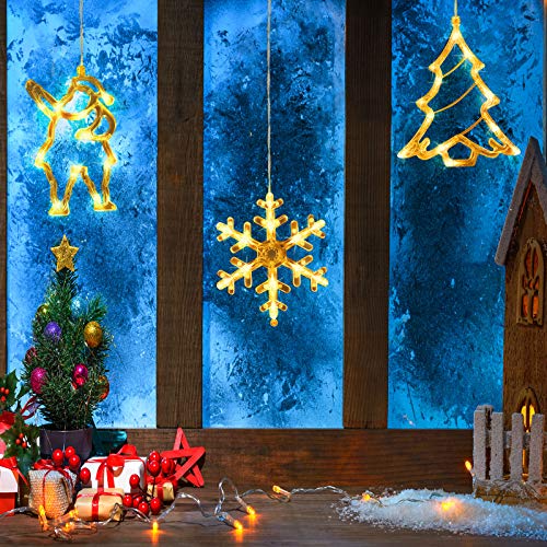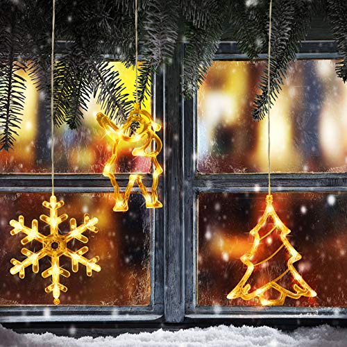 Hiboom 3 Pacchi Decorazioni Luce Finestra Interna Natale Luci a Stringa Sfondo per Esterni Interni Casa Camera Letto Matrimoni, 1 Albero di Natale, 1 Babbo Natale, 1 Fiocco di Neve, Bianco Caldo