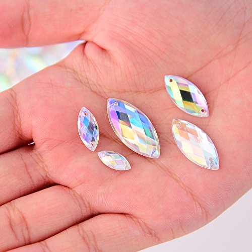 Hicarer AB Chiaro Acrilico Gemme Occhio di Cavallo Pulsanti di Cristallo Artificiali Da Cucire Posteriore Piatto Strass Per Decorazioni Di Abbigliamento, 150 Pezzi