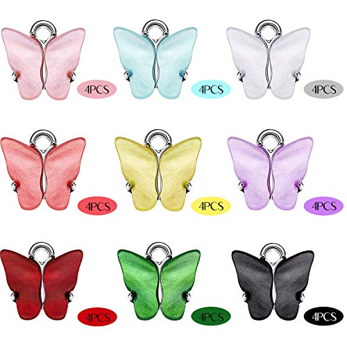 Informazioni sul prodotto: ci sono 36 pezzi di ciondoli a forma di farfalla in argento, realizzati in lega di argento K bianco e acrilico, ogni parte metallica è resistente e il colore non è facile da sbiadire, puoi usarli a lungo