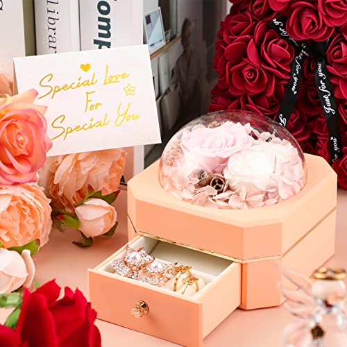 Squisito cassetto per gioielli: il cassetto per fiori conservato contiene un portagioielli in stile cassetto nella parte inferiore, è progettato per contenere collane, anelli, orecchini e altri piccoli accessori, con una delicata fodera in flanella per evitare che i gioielli si graffino (Nota: i gioielli sono non incluso)
