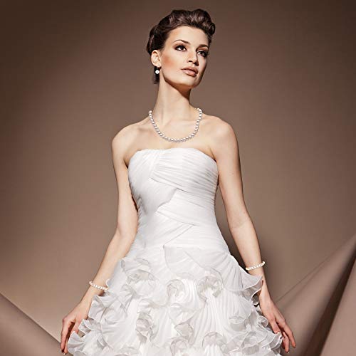 Set di gioielli di perle finte bianche: il set di gioielli di perle finte bianche include 1 pezzo di collana di perle, 1 pezzo di braccialetto elastico di perline e 1 paio di orecchini di perle pendenti, la dimensione della collana è di ca. 18 pollici, il braccialetto è 7,9 pollici e il diametro della perla è di circa 12 mm, un set coordinato di ornamenti di perle è degno del tuo favore