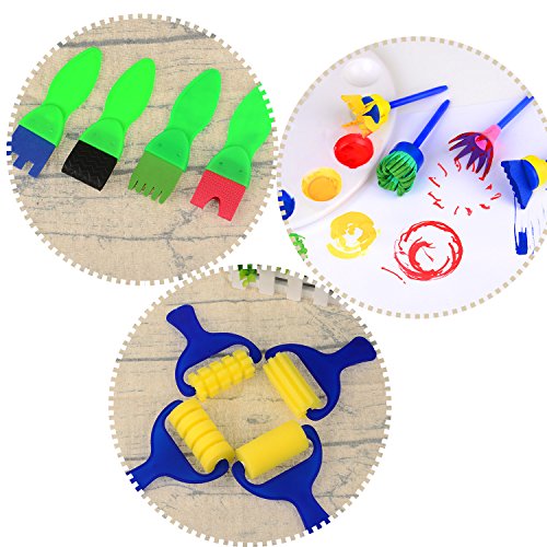 Vari tipi di set della pennello: questa set di pennelli della pittura della spugna è differente nelle figure, nei colori e nelle funzioni, permettono che il vostro piccolo artista generi i modelli differenti