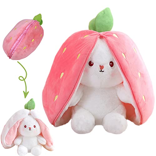 【Fragola e Coniglietto in Uno】: Un peluche convertibile con 2 forme completamente diverse.Può essere una simpatica fragola o un simpatico coniglietto.Aprire la cerniera della fragola e tirare le orecchie del coniglietto per trasformarlo in un simpatico coniglietto.Questo equivale ad avere due simpatici peluche.Sorprendi la tua famiglia, i tuoi amici o la tua ragazza.
