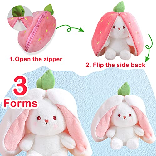HICAS Coniglietto di Pasqua Farcito Giocattolo Animale,Reversibile Floppy Ear,Hide-and-Seek Bunny Peluche Giocattolo,Peluche di Coniglio Avvolto in carote o Fragole