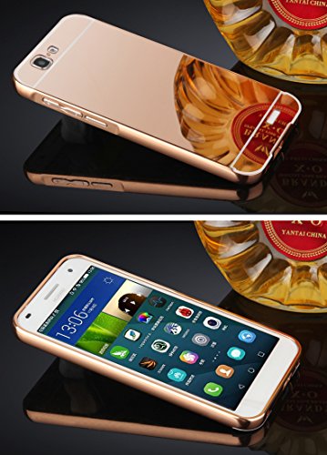 HICASER Alluminio Metallo Custodia per Huawei Ascend G7 Lusso Bumper Case + Specchio Back Cover Ultra Sottile 2 in 1 Telefono Protettiva Caso Rosa