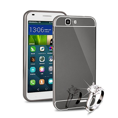 HICASER Alluminio Metallo Custodia per Huawei Ascend G7 Lusso Bumper Case + Specchio Back Cover Ultra Sottile 2 in 1 Telefono Protettiva Caso Grigio