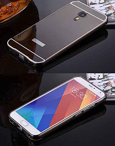 HICASER Alluminio Metallo Custodia per Meizu MX5 Lusso Bumper Case + Specchio Back Cover Ultra Sottile 2 in 1 Telefono Protettiva Caso Grigio