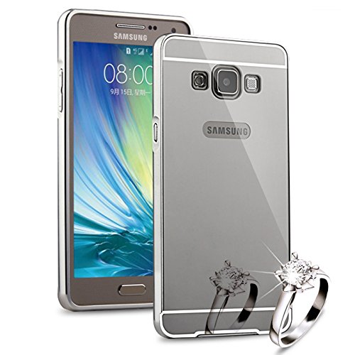 HICASER Alluminio Metallo Custodia per Samsung Galaxy A3 Lusso Bumper Case + Specchio Back Cover Ultra Sottile 2 in 1 Telefono Protettiva Caso Argento