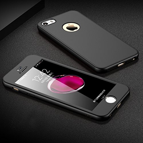 HICASER Custodia per iPhone SE 2016 Full Body Coque, Matte Finish Antiscivolo, ultra leggera TPU Case 360 Gradi + Protezione in Vetro Temperato per iPhone 5 / iPhone 5s Nero