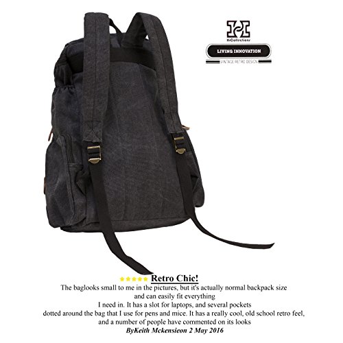 HiCollections Travel Vintage Canvas Messenger Backpack Sport Rucksack Camping School Satchel Tote Hiking Military Laptop Bag Hand Luggage + Free 24 Card Holder Wallet by (Black)