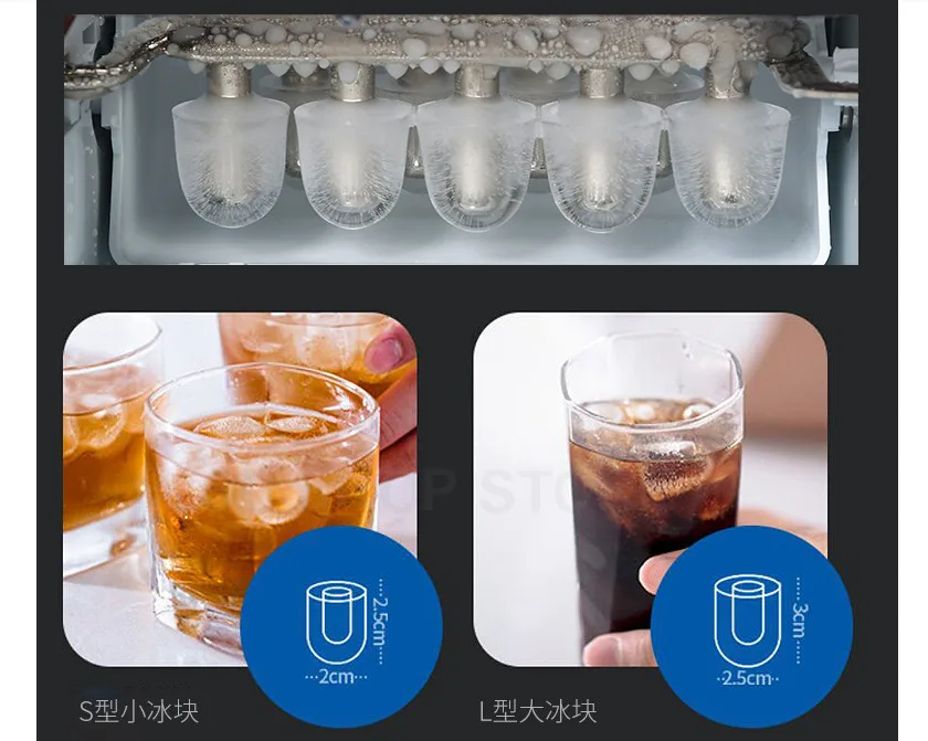 HICON 16kgs/24H Portable Automatic ice Maker, Household bullet round ice make machine for family, small bar,coffee shop