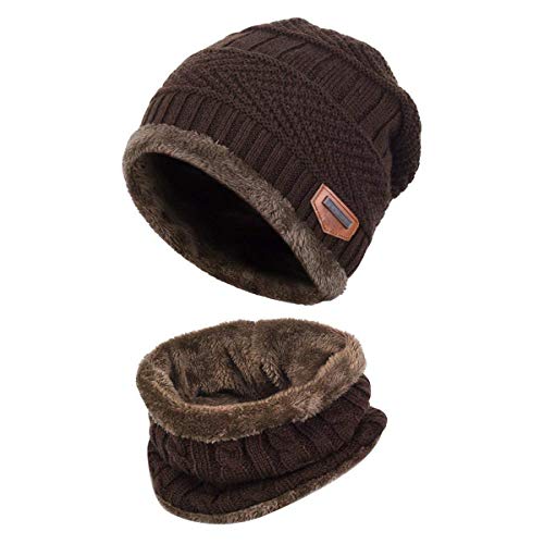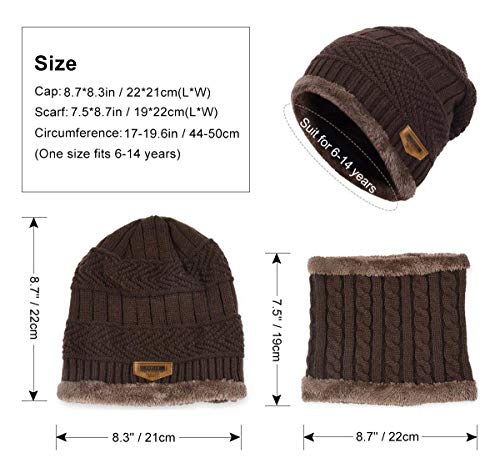 HIDARLING Bambini Cappello e Sciarpa di Inverno Berretta in Maglia e Scaldacollo Set con Fodera in Pile (caffè)