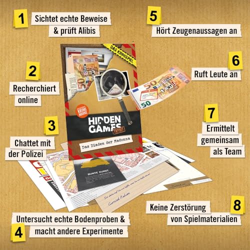Hidden Games - Gioco in scatola “Tatort, Krimispiel Fall 2 - Das Diadem der Madonna” scena del crimine, gioco Escape Room, edizione in tedesco