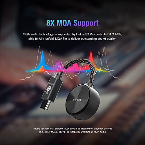 ♫『8X MQA Support』MQA audio technology is supported by Hidizs S3 Pro portable DAC AMP, able to fully 'unfold' MQA file to deliver outstanding sound quality. Music services that support MQA should be installed on playback devices (e.g., HiBy Music, TIDAL) to realize 8x unfolding of MQA audio.