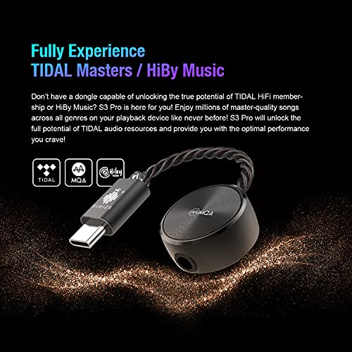 HIDIZS S3 PRO Ultra Portable Hi-Res DAC Dongle, 8X MQA Support, PCM up to 32Bit/384kHz, DSD128 Decoding Amplifier Type-C Audio Cable Converter for Android/Windows/Mac OS/iOS/iPad OS System (Black)